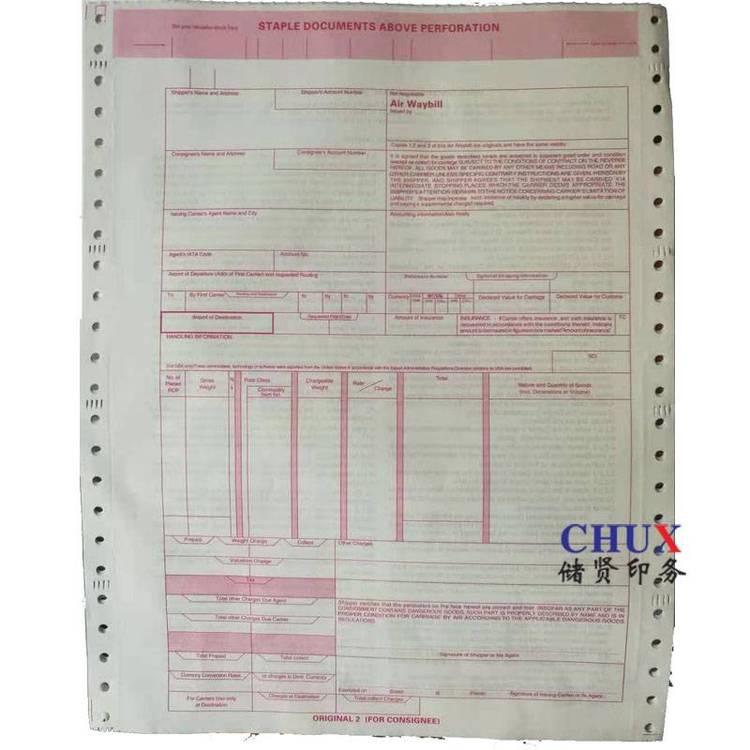 储贤牌的海运联单印刷六联正三副三空运定制无碳复写产品:估价:1.80,规格:空运联单印刷定制,产品系列编号:空运联单印刷定制 发布日期:2025-4-18